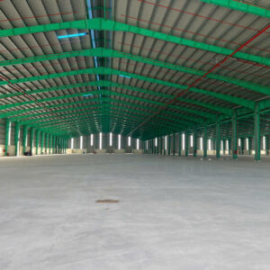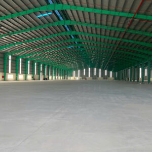 Cho thuê xưởng trong cụm sản xuất tại Tân Uyên - Bình Dương Diện tích đất: 11500m2. Đất SKC thời hạn 30 năm. Diện tích xưởng: 5600m2 (W70 x L80)m. Xưởng đang xây dựng đạt tiêu chuẩn KCN. Kết cấu khung kèo thép zamil. Tole mạ màu 5mm cách nhiệt, tole vách sóng vuông dày 4mm. Tole sáng và chớp lấy gió đảm bảo xưởng mát mẽ và tiết kiếm năng lượng điện. PCCC tự động đầu phun sprinklers. Có thẩn duyệt và nghiệm thu đầy đủ. Pháp lý nhà xưởng có hoàn công. Trạm điện 630 kva. Văn phòng 200m2. Sân bãi quá rộng rãi. Giao thông rất thuận tiện. Vị trí dễ tuyển lao động. Ưu tiên ngành nghề sạch sẽ, hợp đồng thuê lâu dài. Giá thuê: 3 usd/m2 có thương lượng. tiền đặt cọc 4 tháng
